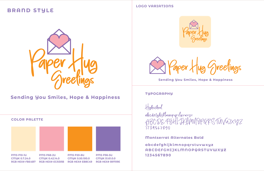 Create a logo, formulate a tagline, establish a color palette, and develop a brand style guide for Paper Hug Greetings. Craft a comprehensive 3-page brand guide for the client's future reference.